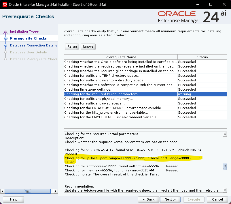 EM Prerequisite Kit is very useful to check, if your system is ready to install OEM24ai.