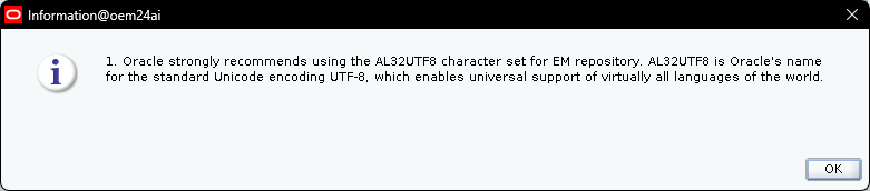 [oracle@oem24ai oem_sw]$ ./em24100_linux64.bin -J-Djava.io.tmpdir=/u03/tmp EMPREREQ_KIT=true -componentVariables repository:EXECUTE_CHECKS_NOSEED_DB_FOUND:false