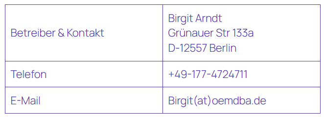 Der Nutzung von im Rahmen der Impressumspflicht veröffentlichten Kontaktdaten zur Übersendung von nicht ausdrücklich angeforderter Werbung und Informationsmaterialien wird hiermit widersprochen. Die Betreiber der Seiten behalten sich ausdrücklich rechtliche Schritte im Falle der unverlangten Zusendung von Werbeinformationen, etwa durch Spam-E-Mails, vor.